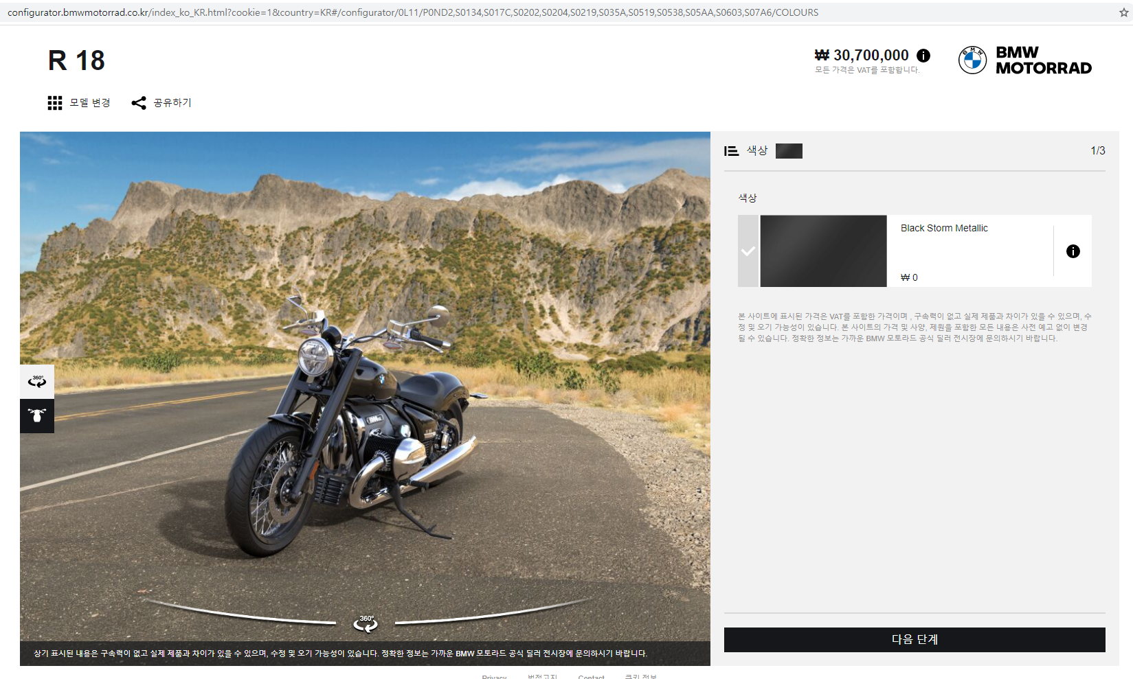BMW R18은 ‘프리미엄 패키지’와 ‘퍼스트 에디션’ 두 가지 버전으로 판매 중이다. 가격은 각각 3천70만 원, 3천3백40만 원으로, 보다 자세한 내용은 BMW 모토라드 공식 웹사이트에서 확인할 수 있다.